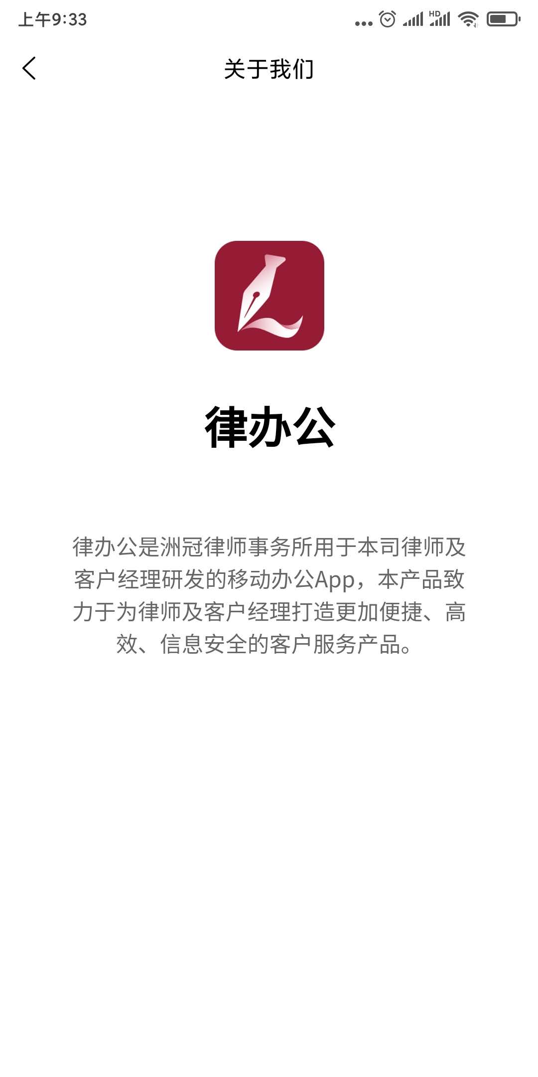 律办公是洲冠律师事务所用于本司律师及客户经理研发的移动办公App,本产品致力于为律师及客户经理打造更加便捷、高效、信息安全的客户服务产品。
